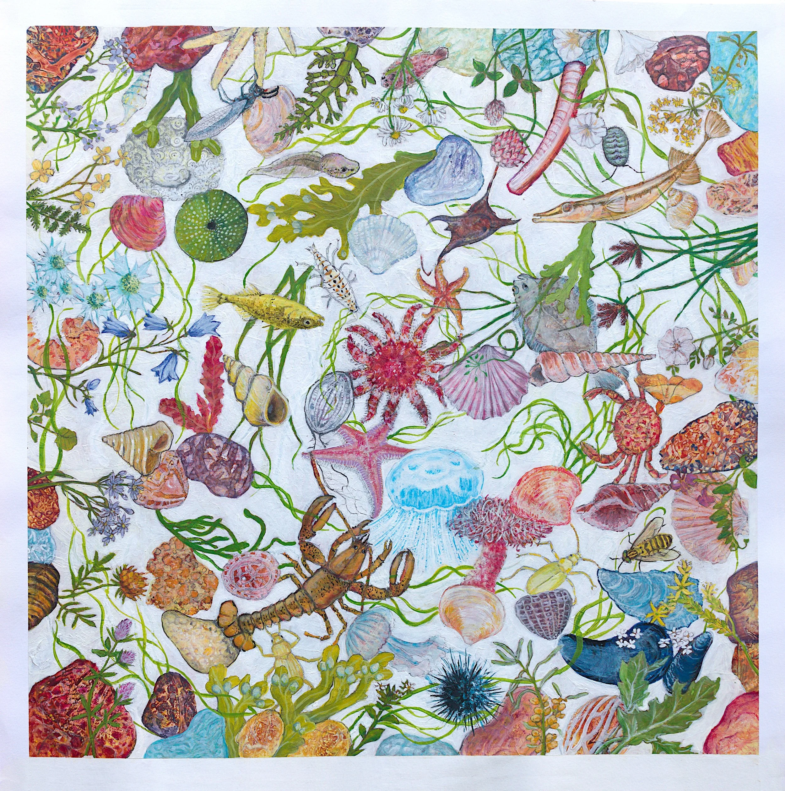 ´Klods-Hans´, collage, watercolour, gouache, pencil +col paper on watercolour paper, 40x30 cm